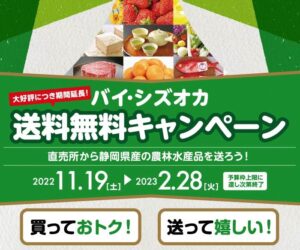 こちらは静岡県の加盟店舗、直売所などから商品を発送する際、送料を静岡県が負担するという神キャンペーンです!