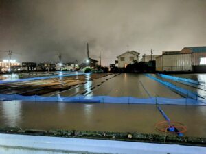 1時間ほどで水位は下がってきましたが、その後も雨がちょっと降るだけで水たまりになるという事態に。